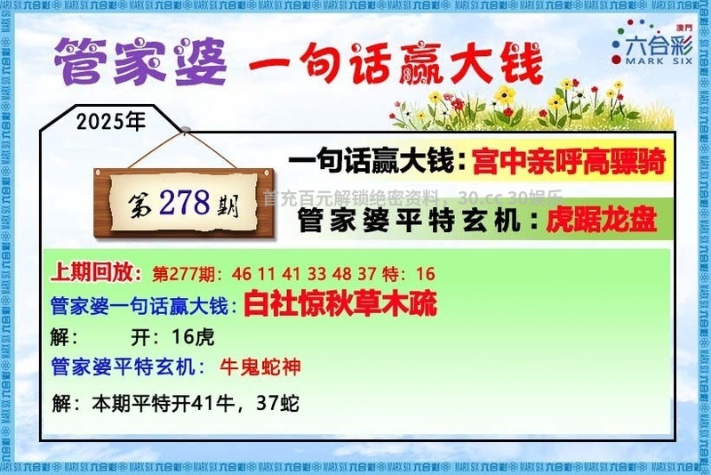 277期管家婆一句话:白社惊秋草木疏 解:草木解出木肖虎兔,平特玄机是牛鬼蛇神的意思是泛指妖魔鬼怪。形容作品虚幻怪诞。比喻形形色色的坏人。 综合:蛇马虎龙牛兔 特码:13.49.36.48.04.16.02.14.17.41.15.27 |